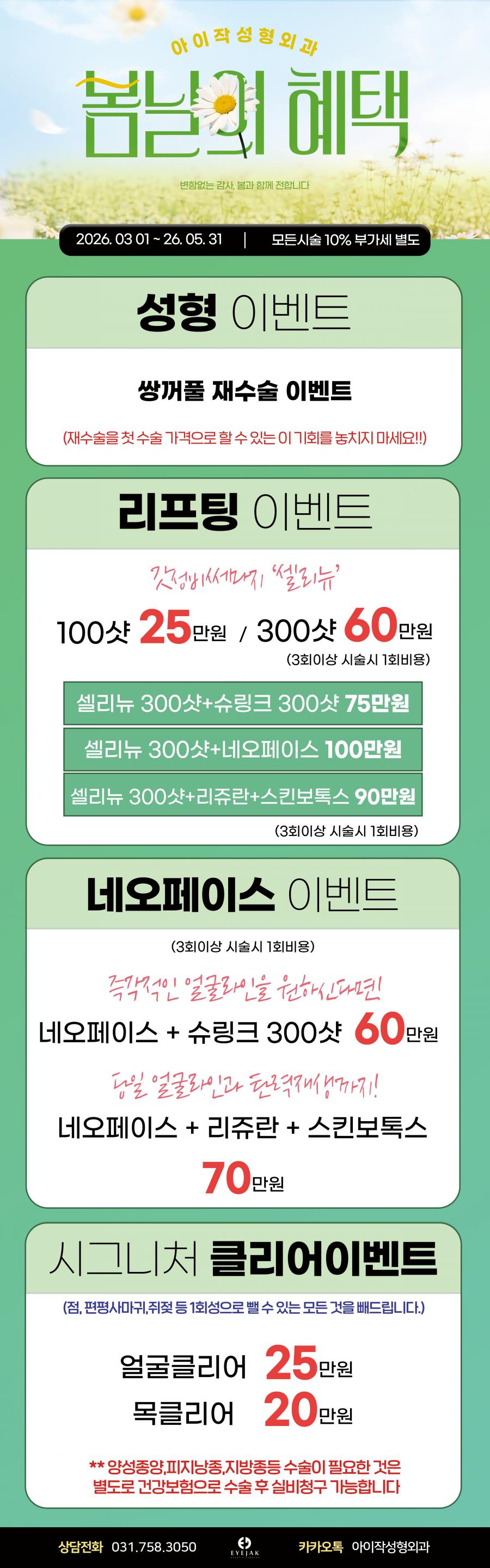 | 공지 | 26년 아이작성형외과 봄이벤트 소개! | 관리자 | 2026.03.01 | 395 |